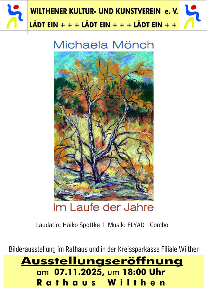 Ausstellungseröffnung Michaela Mönch – Im Laufe der Jahre Ausstellungseröffnung am Freitag, 07.11.2025 um 18.00 Uhr im Rathaus Wilthen